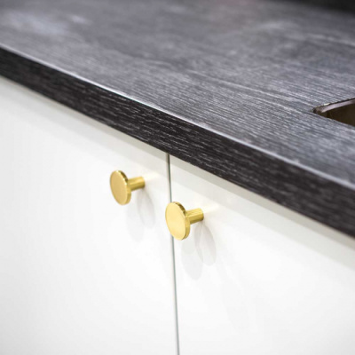 Knob Dalby is a trendy knob in solid brass. Dalby is available in three designs, polished copper, polished brass and untreated polished brass. It is a knob that fits the modern kitchen, in the bathroom or as a knob on wardrobes or drawers.