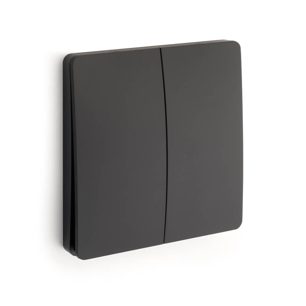Kiny is available in white or black finish, and in two variants: single or double. Single is a single-channel kinetic switch, and double is a two-channel kinetic switch. Kiny can be screwed in place or attached with the included adhesive tape.