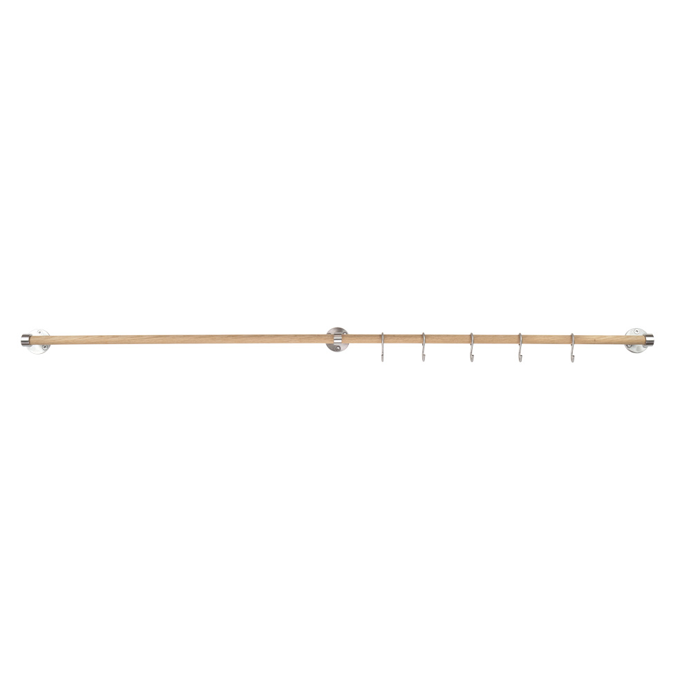 Extension Rod Aveny in untreated oak for Kitchen Railing Aveny. Includes holders in brushed stainless steel, 3 hooks, and screws.