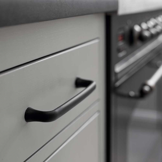 Handle in cast iron. In a new exciting material for handles and knobs, there are now three powerful models, all in cast iron. The matt black color and the slightly uneven surface thus provide both an industrial style and a good grip. The design of this series is simple and modern in the expression and gives the products a stylish and elegant look that fits into the modern home.