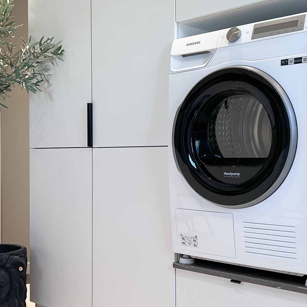 The profile handles are mounted from the inside of the door or drawer. Tip - Pre-drill before fitting the handle. Remember to measure the screw relative to the door, the screws and holes should not go through the door.
