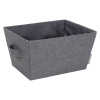 The basket is made of durable polyester and features a sturdy construction that holds its shape even when empty. Discreet handles on the sides make it easy to lift and move when needed.