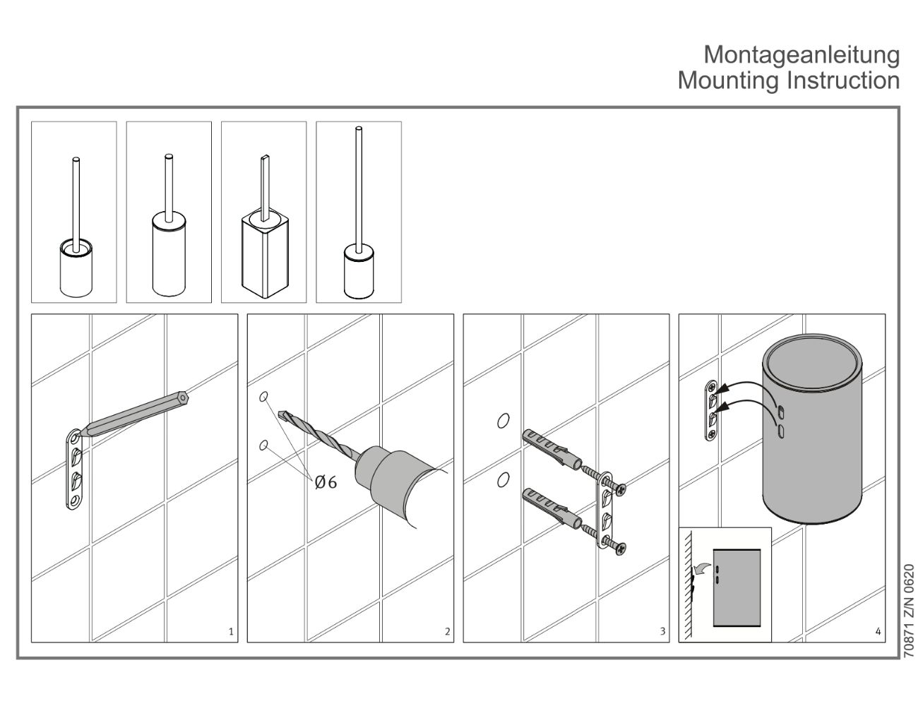 The toilet brush is equipped with a plastic lid and a plastic insert, providing extra durability and easy cleaning. The flexible design allows it to stand stably on the floor or be hung on the wall, depending on what best suits your bathroom. A wall-mounting kit is included.