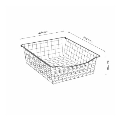 Wire tray 150 is available in three designs, dark grey, silver, and white. Choose between four different sizes depending on the cabinet width you have, 400mm, 500mm, 600mm and 800mm.