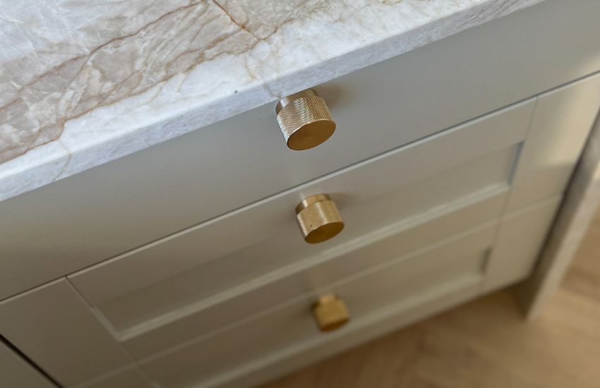 Brushed Brass Knobs: Brushed brass has a smooth, brushed surface that imparts a modern and elegant feel. The brushed finish provides a soft glow that adds a sophisticated touch to the interior.