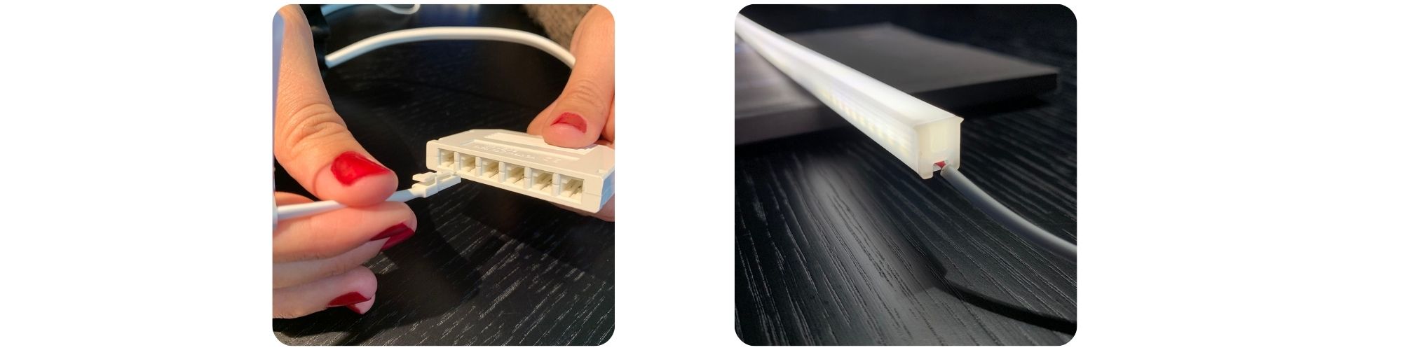 6. Disconnect the products and place the drive in the desired location, then connect the profile to the drive. If you want to connect your new lighting to a wall switch, you must contact an electrician.