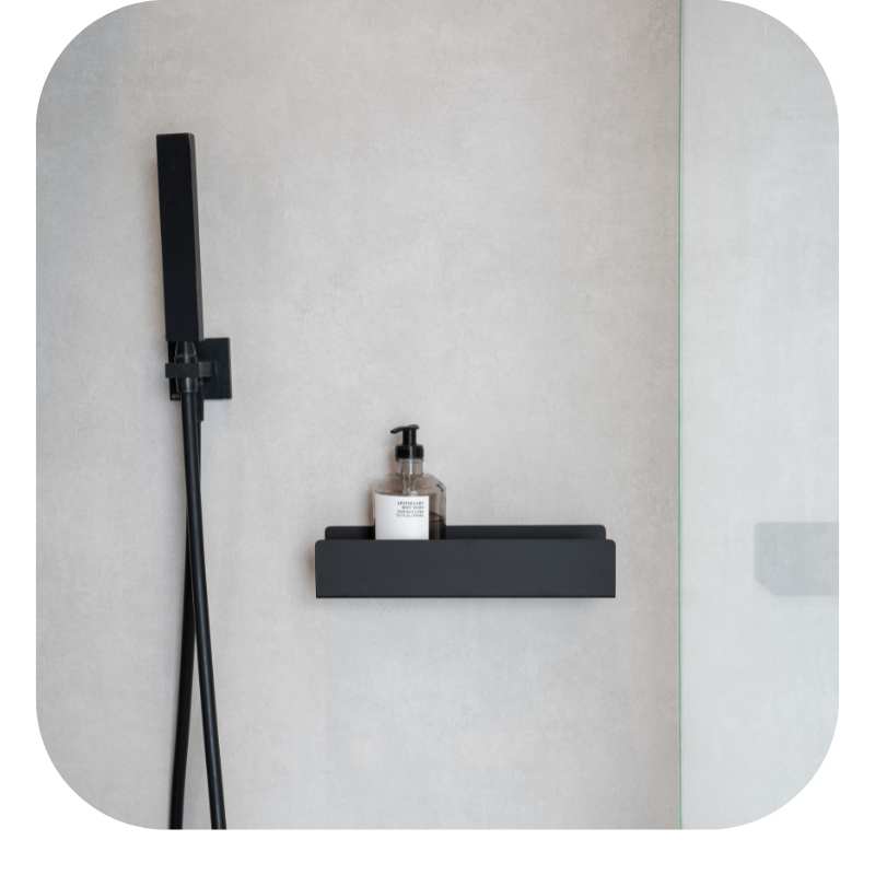 Self-adhesive shelves are perfect for the shower, but also for expanding storage options in the bathroom—place the shelf near or next to the mirror, ideal for a small vase, makeup remover, skincare routine, or daily jewelry. If you want to place the shelf in the shower, the most optimal height is between 100-130 cm from the floor. It should be easy for everyone in the household to reach.
