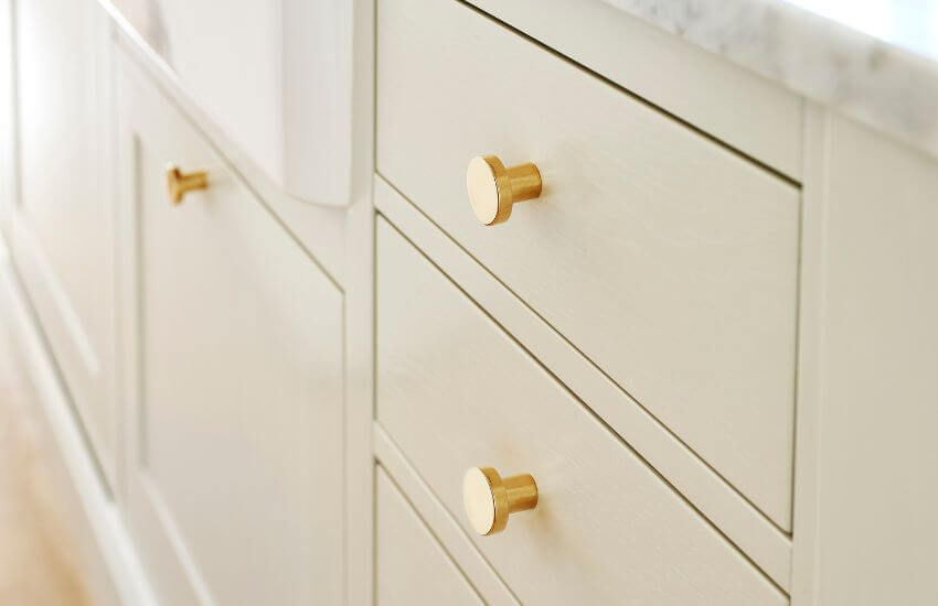 In a kitchen, it is very modern today to mix kitchen knobs with
